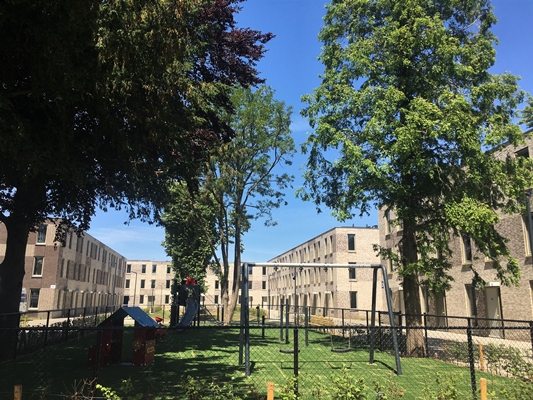 Een deel van de bewoners zal gehuisvest worden in de nieuwbouw. Op de voormalige parkeerplaats van het PLEM-gebouw zijn vijf woonblokken met 38 grondgebonden woningen in stedenbouwkundige samenhang met het PLEM-gebouw in carré-vorm ontworpen. Hierdoor ontstaat een woonhof waarin zoveel mogelijk bestaande bomen behouden zijn gebleven. De intieme groene hof geeft ruimte aan de bewoners om rond te slenteren, onder de bomen te zittenen en kinderen te laten spelen in het speeltuintje.