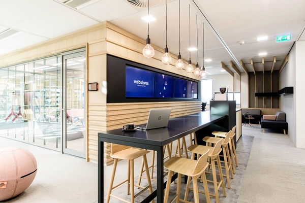 Webstores groeide in korte tijd uit naar bijna 50 medewerkers en is ondertussen één van de grootste werkgevers deze branche in Noord-Oost Nederland geworden. Het nieuwe onderkomen in het bedrijfsverzamelgebouw ‘Heemserhoek’ is sinds 2013 in gebruik door de Rabobank. Maar van deze aantrekkelijke zichtlocatie van ca 5.500 m2, dichtbij de ‘ingang’ van Hardenberg werd de tweede, derde en vierde etage compleet opnieuw ingericht voor Webstores.