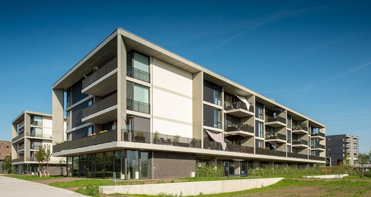 Bij dit appartementencomplex te Waalwijk spelen de zorgvuldig vormgegeven kopgevels een belangrijke rol. Enerzijds als markering van de entree tot de wijk, anderzijds als uitnodigende entree aan de boulevard.