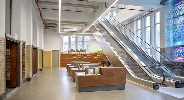 Een groot cadeau voor iedere inwoner van Utrecht, het ontsluiten van een icoon! Het voormalige hoofdpostkantoor, een robuust monument in de Amsterdamse School stijl, is geopend voor de stad en laat zich ontdekken. Zecc Architecten en Rijnboutt creëerden ruimtes voor boeken, studie, muziek, om koffie te drinken of gewoon te ontspannen. Bijvoorbeeld in de fenomenale centrale hal waar menig Utrechter in de rij stond voor een velletje postzegels, maar ook in al die prachtige ruimten daar omheen, 8.000 vierkante meter bedrijfsvloer, die tot voorkort voor iedereen verborgen bleven.