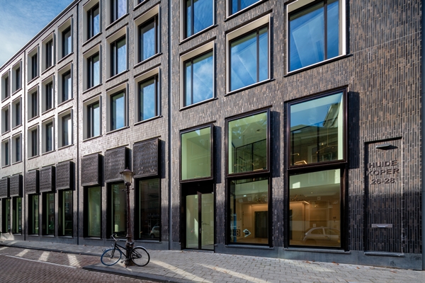 Janneke vertelt dat de omgeving, historie en patronen allemaal inspiratiebronnen zijn voor haar ontwerpen. “Maar vaak is het ook intuïtief. Daarnaast geef ik oude materialen graag een vernieuwingsslag.” Het is niet zo dat BiermanHenket is uitgerust om materiaalonderzoek te doen, maar ze staat wel open voor nieuwe materialen en het bureau werkt daarbij nauw samen met leveranciers. “Samen doen we proeven en zijn we constant in gesprek om te komen tot de optimale oplossing.” Voor de aluminium roosters met een speciale zwarte coating wendde zij zich tot Metadecor en voor de keramische steenstrips tot Sto. Onder haar regie ontstond een mooie balans tussen de metalen geveldelen en het verticale metselwerk. Gevraagd naar de keuze voor keramische steenstrips, zegt Janneke: “De smalle trottoirs in de oude stad en de bestaande constructie lieten geen nieuwe baksteengevel toe, terwijl het onze wens was om een authentiek straatbeeld te creëren. Door de steenstrips afwijkend – verticaal - toe te passen konden we verwachtingen waarmaken en voegt de hedendaagse architectuur zich naar de omgeving.” Bovendien had ze oog voor de sociale omgeving. “In het ontwerpproces is er rekening gehouden met de gevoelige bouwlocatie in de binnenstad, door zo te detailleren dat er zoveel mogelijk geprefabriceerd kon worden. Op die manier is de overlast voor de omringende bewoners tot een minimum beperkt.”