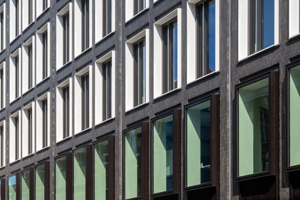 “We hebben de rijkdom die je in oude gebouwen ziet hedendaags vertaald; een combinatie van historie en eigentijdse materialen”, vervolgt Janneke. Het respect voor de stad komt goed tot uiting in de nieuwe gevels met een klassieke opbouw en een royale hoogte. De detaillering is zo uitgevoerd, dat er zoveel mogelijk schaduwwerking en een verfijnd lijnenspel ontstaat. “De puien op de begane grond zijn zes meter hoog en plaatselijk ingevuld met speciaal ontworpen roosters. Deze roosters onttrekken de parkeergarage uit het zicht. Terwijl de plantenbakken bijdragen aan de vergroening.” Bovendien zorgt de vegetatie voor een kleurnuance tegen de achtergrond van metalen geveldelen en keramische steenstrips.