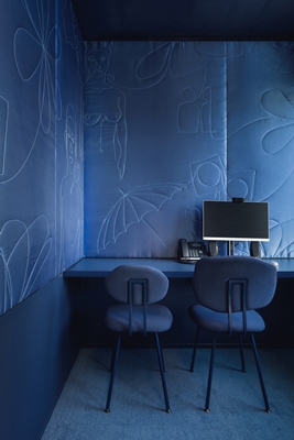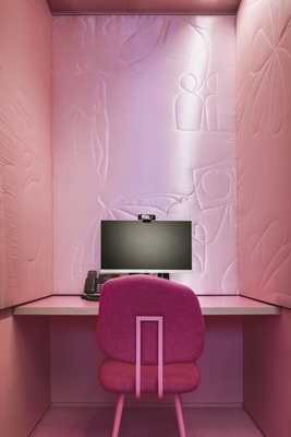 Het kleurenpalet voor de werkomgeving (inclusief vergaderruimten) is na een uitvoerige kleurstudie samen met de organisatie vastgesteld. Oranje, Zacht roze, blauw en groen brengen een zonering aan in de twee verdiepingen die door het Aidsfonds worden gehuurd in Quarter Avenue. De uitwerking van de kleur op de verschillende materialen en oppervlakten geeft een bijzondere rijkdom aan de omgevingen. De meubilairkeuze, die samen met Hans Lensvelt tot stand is gekomen, doet volledig mee in de kleurrijke omgevingen en heeft geresulteerd in speciale uitgaven van de Maarten Baas collectie.