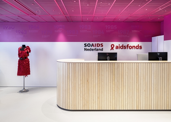 We zijn als ontwerpers geselecteerd om de neutrale basis van de nieuwe locatie samen met de Aidsfonds organisatie een fris en inspirerend nieuw leven in te blazen. We zijn hierin geslaagd door het fascinerende verhaal van het Aidsfonds te vertellen in de ruimte. We zijn stage gaan lopen, we zijn gaan luisteren naar alle verhalen, we zijn meegenomen door het rijke archief van de campagnes en we hebben nieuwe vrienden gemaakt.