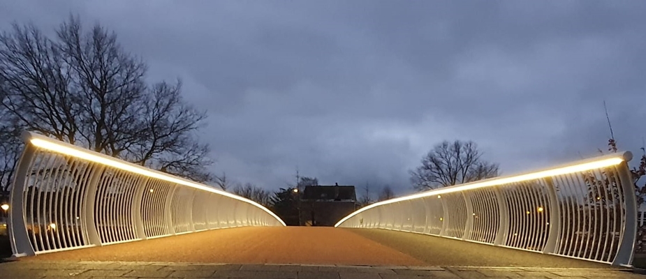 ILLUNOX® heeft in nauwe samenwerking met De Vries Werkendam B.V. in twee fasen de verlichte brugleuning van de fiets- en voetgangersbrug