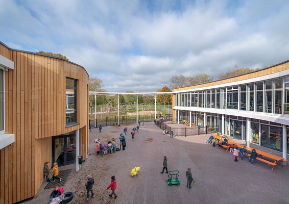 een energieneutraal gebouw ontworpen dat met zijn open vloeren ruimte biedt aan een grote diversiteit aan onderwijsactiviteiten.