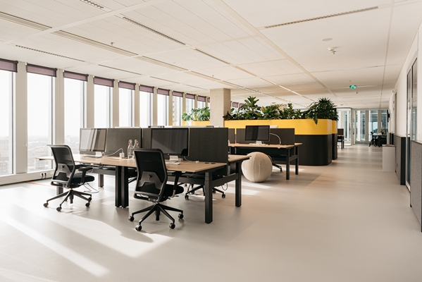 Bij het interieurontwerp is veel contrast aangebracht waardoor er uiteindelijk juist een mooie balans ontstaat in hoogte, kleur, vorm en materiaalgebruik. Wat betreft vorm zijn op strategische plekken vergaderzalen geplaatst die niet alleen solitaire ruimtes zijn, maar in zijn geheel een grote complete puzzel vormen.
