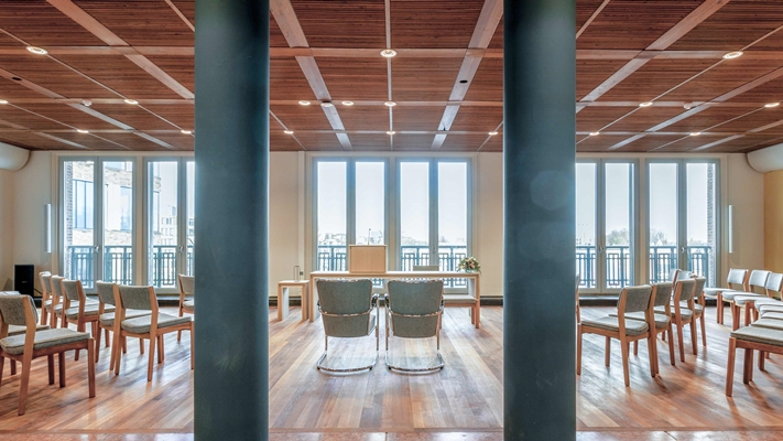 De ruimtes voor de raadsfracties, het dubbelhoge raadscafé en het restaurant liggen op de begane grond waardoor er direct visueel contact met passanten is. Op de eerste verdieping liggen vergader- en werkplekken rondom de grote hal, die via grote raampartijen uitzicht hebben op en over de stad. De tweede verdieping biedt ruimte aan de Trouwzaal, de Raadzaal en de Burgerzaal. Op derde en bovenste verdieping is de glazen lichtstraat zichtbaar teruggebracht waardoor ruimtelijke kantoren met veel daglicht ontstaan.