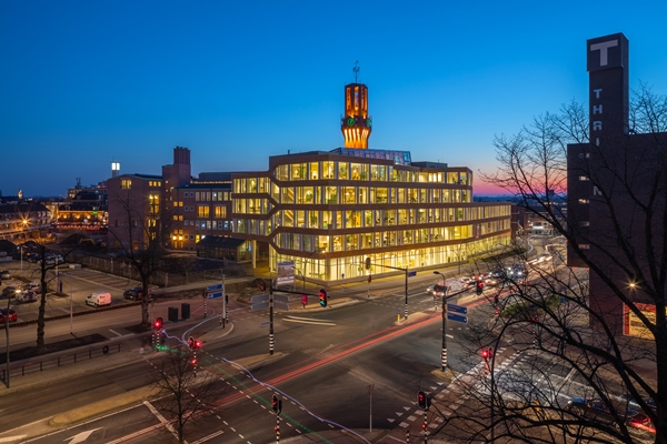 Het nieuwe stadhuis Hengelo maakt het centrum weer tot kloppend hart van de stad. Het eigentijds en duurzaam ensemble bestaat uit het nieuwe stadskantoor en het bestaande monumentale stadhuis. De twee naast elkaar gelegen en verbonden gebouwen zijn programmatisch één geheel, maar genieten eigen karakters. Het rijksmonument heeft weer een open karakter, sfeervolle werkruimtes en een centrale stadshal met bijzondere en gerestaureerde materialisatie. Daarnaast ligt de nieuwbouw met een dynamisch karakter, buitengewone ruimtelijkheid, veel daglicht, duurzame innovaties en ambachtelijke lokale technieken.