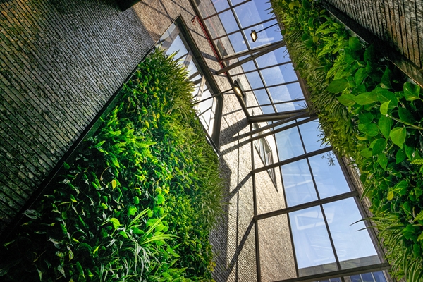 buiten wordt naar binnen gehaald, groen tot aan de bovenste verdieping