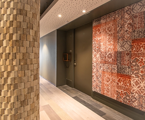elke verdieping heeft zijn eigen specifieke wandbekleding