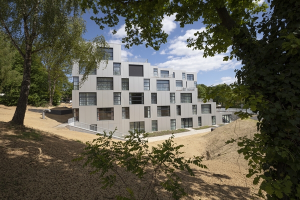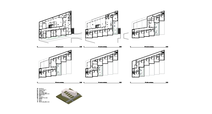 Het gebouw is ontworpen van binnenuit. Een standaard galerij blok is gekruist met terraswoningen. Dit resulteert in een getrapt gebouw met per verdieping een collectieve terras op het zuiden. De ‘trap woningen’ vorm het dak van de FieldLab op het noorden. Zodoende zijn beide programma onderdelen leesbaar maar tegelijk onlosmakelijk verbonden met elkaar. Het gevel vouwt van buiten naar binnen waardoor een regelbare scheiding tussen de woningen de FieldLab ontstaat.