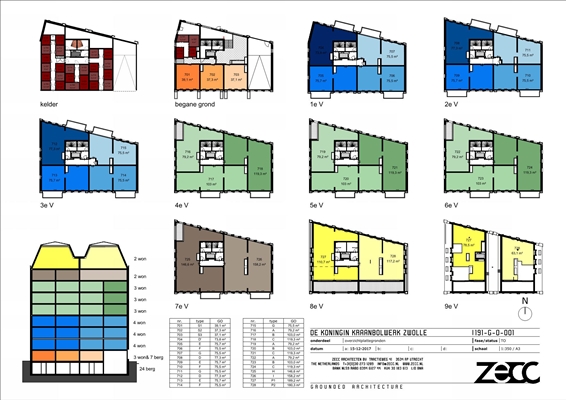 Het Kraanbolwerk, een schiereiland op steenworp afstand van de historische binnenstad van Zwolle, is stedenbouwkundig getransformeerd naar een uniek woongebied. Voor Van Wonen Vastgoedontwikkeling heeft Zecc Architecten De Koningin, een appartementengebouw, en acht stadswoningen ontworpen. Op een stoer stadseiland komen stedelijk invloeden samen met een karaktervol gevoel van fijnmazigheid. Het Kraanbolwerk is allesbehalve een standaard vinex uitbreidingswijk.