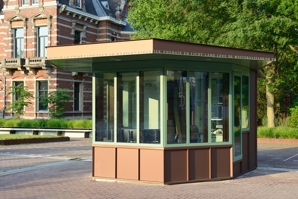 De nieuwe portiersloge voor het Westergasfabriekterrein in Amsterdam staat centraal op het terrein, direct na de stalen brug. Het compacte gebouwtje biedt plaats aan twee portiers, een keuken, toiletruimte, installaties en bergruimte. Het was een uitdaging om de footprint van het gebouwtje te passen binnen het bestemmingsplan. Het ontwerp is zorgvuldig ingepast in de monumentale omgeving.