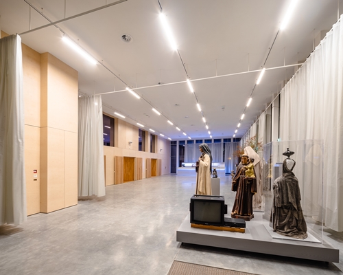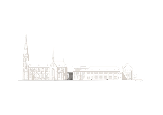Het nieuwe bouwvolume tussen de kerk, het Augustijns Instituut en het gymnasium verbindt de losstaande historische bouwdelen met elkaar. Deze centrale ‘knoop’ organiseert de interne routing en voorziet het complex tegelijkertijd van drie nieuwe entrees. Via de Kanaalstraat, de Tramstraat en de binnentuin ontsluiten we het nieuwe complex en maken we een stedenbouwkundige verbinding met de omgeving.