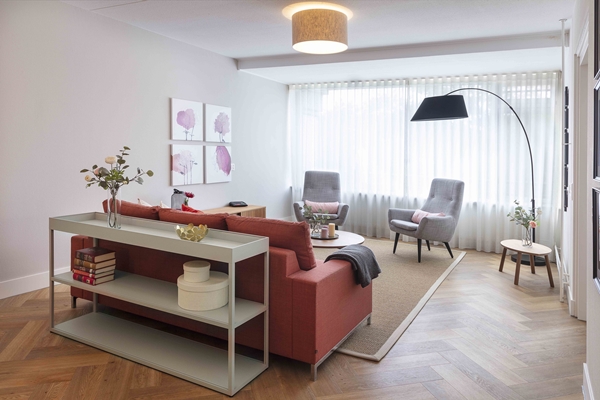 Annekoos Littel ontwierp een moderne eigentijdse uitstraling die op een natuurlijke wijze aansluit bij de bijzondere stijlelementen kenmerkend uit deze bouwperiode, zoals veel hardhouten delen en accenten, MBI stenen wanden en verlichting die niet meer voldoet aan de huidige norm. De opdrachtgever had een sterke wens voor een uitnodigende, warme, hotelmatige uitstraling passend bij de wensen van deze tijd en de toekomstige bewoners. Het afwerkingsniveau en de detaillering is hoogwaardig. Veel aandacht is besteed aan een combinatie van duurzame toepassingen die tegelijkertijd een hotelmatige en warme uitstraling bieden.