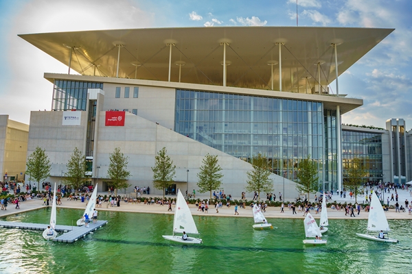 Officieel heet dit multifunctionele gebouw van architect Renzo Piano ‘The Stavros Niarchos Foundation Cultural Center’. Een enorm groot complex waarin behalve de Nationale Opera ook de Nationale Bibliotheek is gevestigd. Het ligt in de baai van Phaliron in Athene en er is opvallend veel aandacht aan de inrichting van de buitenruimte besteed. Toen Piano voor het eerst het gebied bezocht, zag hij direct dat de drukke kustweg de verbinding tussen het stedelijke en het natuurlijke landschap had doorgesneden. Het huidige Stavros Niarchos Park beslaat 21 hectare en is deels ´opgetild´, om bezoekers het zicht op de zee terug te geven. Er worden evenementen gehouden, er kan worden gewandeld en in de enorme waterpartij word gezeild.
