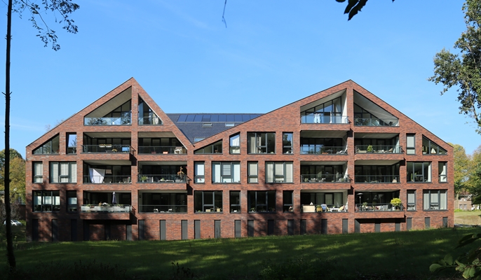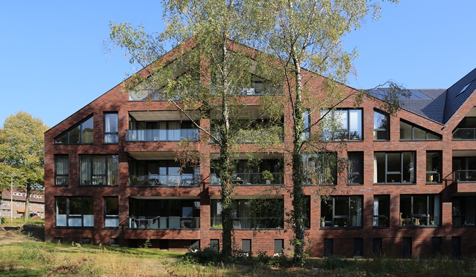 Grenzend aan historische lanen en monumentale kazernegebouwen voegt het nieuwe appartementengebouw De Kolonel in Ede zich op een passende wijze in de omgeving. De heldere geometrische opzet met eenduidige bakstenen gevels en een stoere kap roept direct herinneringen op aan de bestaande bebouwing.