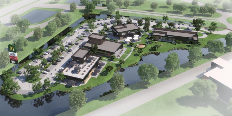 Er komen vier horecapaviljoens met terras van McDonald’s, Happy Italy, De Beren en KFC. Daarnaast verrijst er ook een laadstation van Fastned om elektrische auto’s met groene stroom op te laden. Het moet volgens ontwikkelaar STEENS het meest duurzame, volledig elektrische foodpark van Nederland worden.