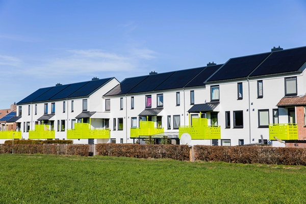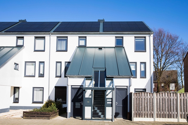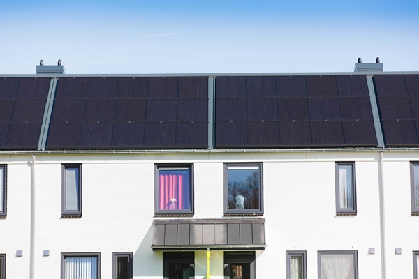 Per blok van 3 woningen zijn 30 full-black zonnepanelen van 300 Wp geplaatst. De zonnepanelen-installatie is goed voor een gemiddelde opwekking van ca. 2700 kWh per jaar per woning.