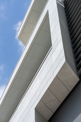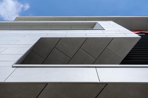 Middels de keramische tegels uit de serie Icôn Bleu van Italgraniti is er een prachtige facade gecreerd.