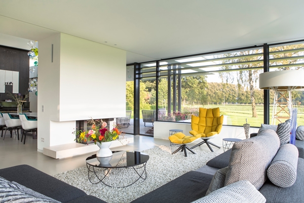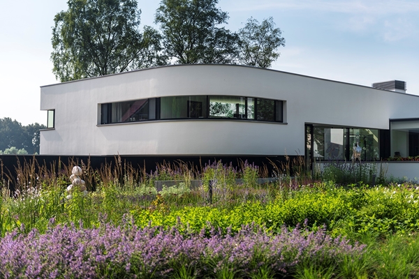 De splitlevel methode is toegepast om de diverse functies op verschillende ‘’verdiepingen’’ meer met elkaar te verbinden. Daarnaast zorgt een ‘’opgetilde plattegrond’’ als een moderne variant van het beÂgrip ‘’bel-etage’’ voor een prachtig uitzicht over het glooiende landschap.