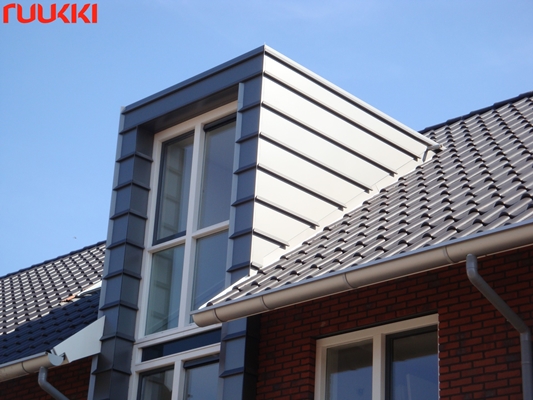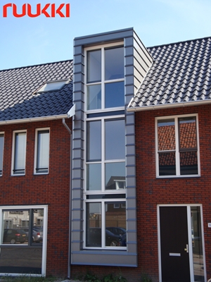 Door de toepassing van dit kwalitatief hoogstaande en moderne gevelsysteem, springen de uitvouwen en dakkappelen eruit als een echte 'eyecatcher'.