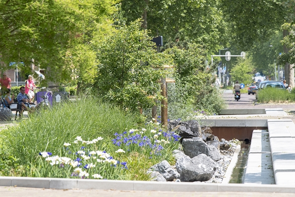 . Bij extreme hoosbuien vangt de wadi het afstromende regenwater van de berg op dat vertraagd wordt afgevoerd naar de beekloop van de Regge. De wadi vormt zowel een ruimtelijk zwaartepunt als een ontspannen en schaduwrijke verblijfsplek. Door aantrekkelijke verblijfsruimte aan de klimaatwadi te koppelen ontstaat er dubbelgebruik voor zowel het watersysteem als gebruikers van de openbare ruimte.