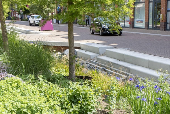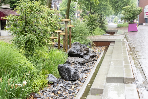De herinrichting van de 800 meter lange Grotestraat in Nijverdal is bijzonder vanwege haar groenblauwe structuur met een klimaatadaptieve wadi en waterbergende plantvakken rondom de bomen. De landschappelijke kwaliteiten van de Sallandse heuvelrug en het beekdal zijn nu tot in de kern van Nijverdal zichtbaar en beleefbaar, wat bijdraagt aan een aantrekkelijk, gezonde en leefbare openbare ruimte. Met de groene oase in het dorpshart is Nijverdal weer op de kaart gezet.