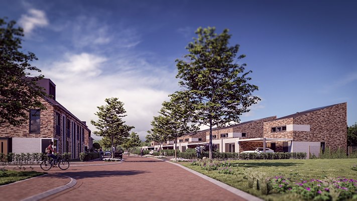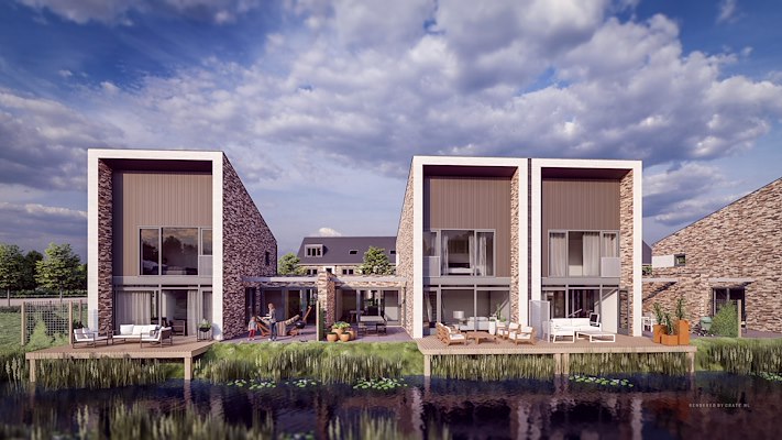 De rand van het plangebied wordt begrensd door 8 riante, geschakelde woningen ontworpen voor de doelgroep ‘fifty and more’. De woningen hebben een keur aan opties, zoals een praktijkruimte met eigen entree, een hoofdslaapkamer met badkamer op de begane grond en een uitbreiding van de living. De woningen zijn volledig georiënteerd op het uitzicht in het oosten, gevisualiseerd door grote puien onder een op het uitzicht openende lessenaarskap.