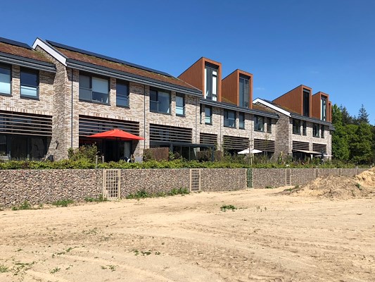 Het natuurlijke pallet van materialen en kleuren onderstreept de ligging nabij bos en heide en is van een chique eenvoud. De woningen zijn terughoudend vormgegeven in zandkleurige gemêleerde baksteen en houten accenten. In lijn met het duurzame karakter zullen de woningen worden verwarmd door aansluiting op een bio-warmtenet. De daken worden voorzien van zonnepanelen en een vegetatiedak met mos-sedumbeplanting.