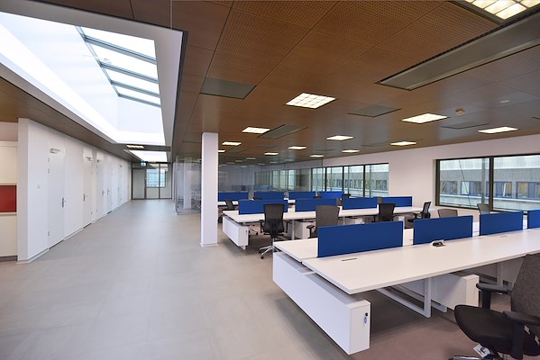 De onderzoeksfaciliteit is een samenwerkingsverband van het Nederlands Herseninstituut-KNAW, Universiteit van Amsterdam (UvA), Vrije Universiteit Amsterdam (VU), Vrije Universiteit medisch centrum (VUmc) en het Academisch Medisch Centrum (AMC). Om deze samenwerking en kennisuitwisseling te stimuleren en is gekozen voor maximale transparantie in vormgeving van op de verdieping gelegen kantoorruimten. Werk- en vergaderruimten zijn voorzien van volledig glazen puien. De flexwerkplekken staan in open verbinding met de loungeruimte, keuken en het besloten terras. Ondanks het gesloten karakter van het exterieur is het interieur licht en luchtig door het gefilterde daglicht en het directe daglicht door de in het dak uitgespaarde daklichten en de patio. In de inrichting en aankleding van het gebouw is op verschillende niveaus een relatie gelegd met de kleur en huisstijl van het Spinoza Centre for Neuroimaging.