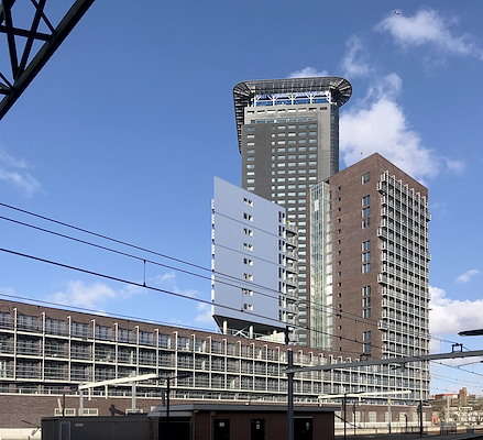 De ingewikkelde logistieke opgave, beperkte bouwlocatie, het aanwezige talud van de spoordijk en de hoge geluidsbelasting, vormden een grote uitdaging bij de realisatie van dit hoogstedelijke bouwplan.