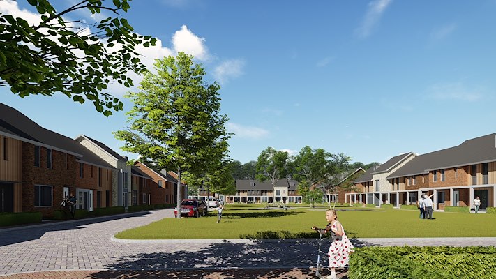 224 woningen: rijwoningen, tweekappers, vrijstaande woningen en appartementen