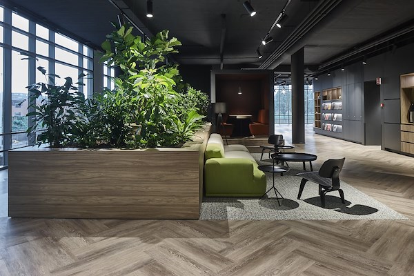 verdieping. De vergaderruimten worden uitgerust met ‘state of the art’ audiovisuele middelen die bijdragen aan de nieuwe manier van werken. Deze verdieping krijgt naast de vergaderruimten, diverse verschillende plekken voor overleg, dit alles in een gezonde groene omgeving met veel beplanting.