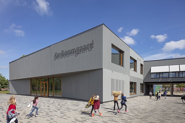 Sineth heeft deze opgave ontworpen samen met Studio Beuving. De opdracht is gewonnen door maximaal in te zetten op verduurzaming en circulariteit. Met name bij de nieuwbouw was het mogelijk om dit onderwerp volledig door te vertalen in het ontwerp. Dit heeft geresulteerd in een volledig houtskelet nieuwbouw welke voldoet aan frisse scholen klasse B. Bij de verbouw en transformatie is ingezet op de domeinscheiding, het beter organiseren van de ruimten ten behoeve van de onderwijsvisies en het aanpassen van de ventilatie naar frisse scholen klasse B. In de uitstraling van het project is verduurzaamd hout het herkenbare en steeds weer terugkerende materiaal. De gevel van de uitbreiding is bekleed met verdiepingshoge houten lamellen. Het gebouw is verder geïsoleerd met vlas-isolatie & alle klaslokalen beschikken over één groot venster. Voor de spuiventilatie zijn er aan weerszijde luiken opgenomen die in het gevelbeeld wegvallen achter doorlopende lamellen.