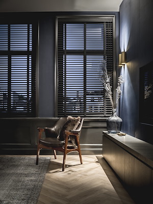 The inspiration for this beautiful house comes from a warm and vibrant boutique hotel. The dark and rich blue combined with the black and brass details gives this house the luxurious atmosphere you normally only expect from high-end hotels. The dining area features a visual border which was achieved with wood detailing that runs from the closet all the way across the ceiling and the opposite wall. This creates a feeling of separate spaces without disrupting the spacious feel of the room. The dark marble combined with the matt black finish makes the kitchen a real eye-catcher that truly pops with the contrasting light oak floor. The beautiful art strikingly displayed throughout the apartment gives this home the finishing touches it deserves.
