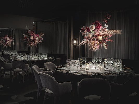 For the Masters of LXRY 2019, we were invited to transform the RAI’s restaurant into a well-loved fairy tale. The main goal was to convert the commercial nature of the space into a warm intimate atmosphere. We did this by using dark hues, luxurious materials and diffuse lighting. By using colourful bouquets and art objects, we gave it a contemporary feel that evoked the theme of love.