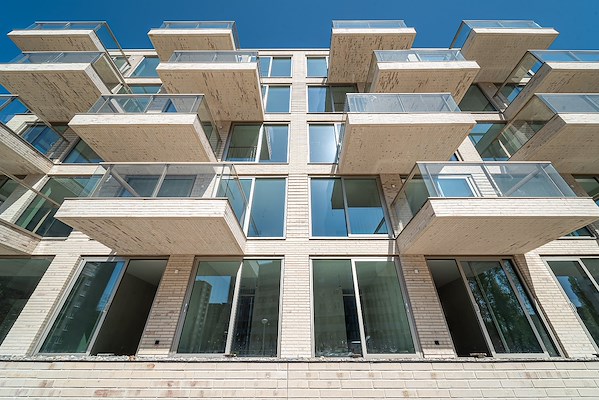 Aanhaken op de na-oorlogse architectuur van de Westelijke Tuinsteden, dat doet Cubes aan de Gerrit Mannourystraat in Amsterdam. Tegelijkertijd richten de twee appartementencomplexen van LEVS architecten zich naar de meer recente bebouwing op deze verdichtingslocatie. Dat aansluiten op de context doet Cubes onder meer met de Hagemeistersortering Langeland HSG in Duits moduulformaat. Architect Adriaan Mout: "Deze sortering leent zich voor de abstrahering die we in dit ontwerp zochten. Daarnaast zitten de stenen met hun sintering en kleurnuances van nabij vol leven."