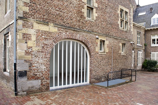 Interne en externe restauratie van een monumentaal pand te Maastricht, Limburg. Vanaf de straat is niet te zien wat er voor een gebouw verborgen ligt achter de poort, waardoor de overgang speciaal is. Vervolgens betreedt men een binnenplein waarin de geornamenteerde, metselwerk gevels te zien zijn.