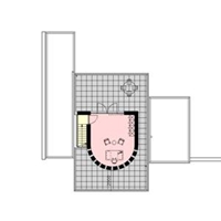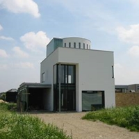 Een tuinmuur van gele breuksteen vormt de basis voor een nieuwe woning aan de rand van een uitbreidingsplan in Amstenrade, gemeente Schinnen. Het wit gestukadoorde kubistische hoofdvolume breekt er als het ware doorheen en presenteert zich gastvrij. Op het dakterras is een halfronde bibliotheek gesitueerd. De tuinkamer alsmede de markante gevelopeningen zijn bezet met antracietkleurige aluminium puien.