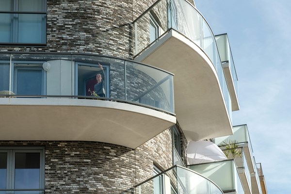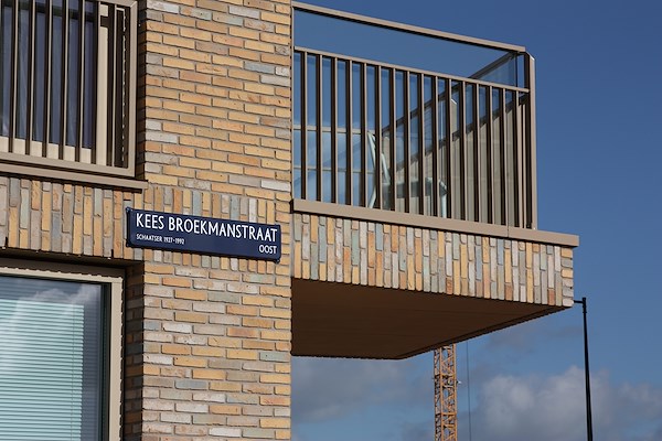 De BrouwerIJ is aan de straatzijde vormgegeven als zeven geschakelde woonblokken, ieder met een eigen materialen- en kleurenpalet maar door het gebruik van een gemeenschappelijke architectonische ‘toolbox’ ook duidelijk familie van elkaar. Het gevelbeeld aan deze zijde wordt bepaald door royale balkons, vormgegeven als plastisch onderdeel van de gevel. Dit effect wordt versterkt door de balkonranden uit te voeren in dezelfde baksteen en de balkons mee te vormen met de – gebogen- gevels.