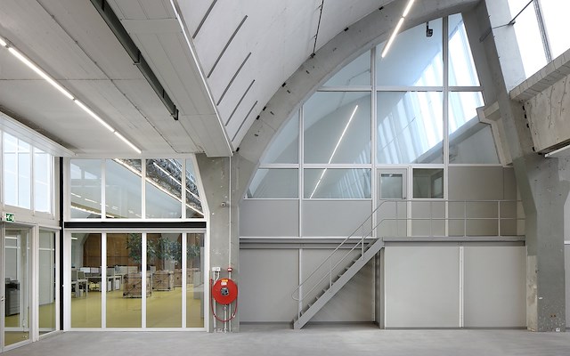 Het gebouw is fraai gerenoveerd en aangepast aan de huidige eisen. Daarbij is het gebouw volledig in ere hersteld wat betreft slankheid van profielen, kleurgebruik, materiaalgebruik en transparantie. De belangrijkste ingreep is het herschikken van de functies. Centraal in het gebouw is een open kantoortuin gemaakt. Deze grenst aan de monumentale toonzaal en bestaande kantoren voor de opzichters. De ingreep verdeelt het gebouw in twee vleugels, de productie en de assemblage, passend in het werkproces van Bruns.