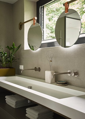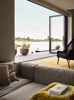 Er is een verbinding gelegd tussen interieur en rivier en de natuur buiten.
