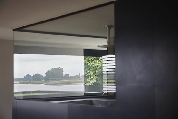 Overal is zicht op de rivier, zelfs vanuit de douche.