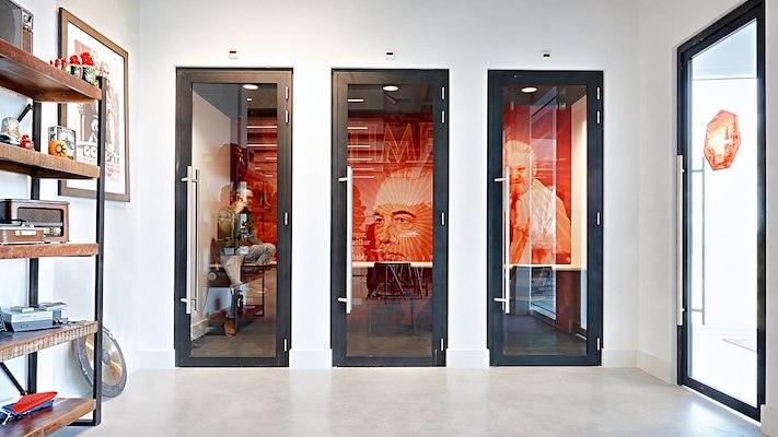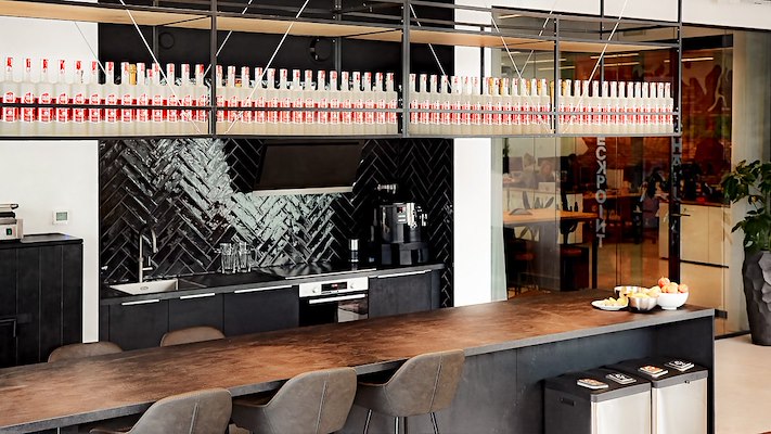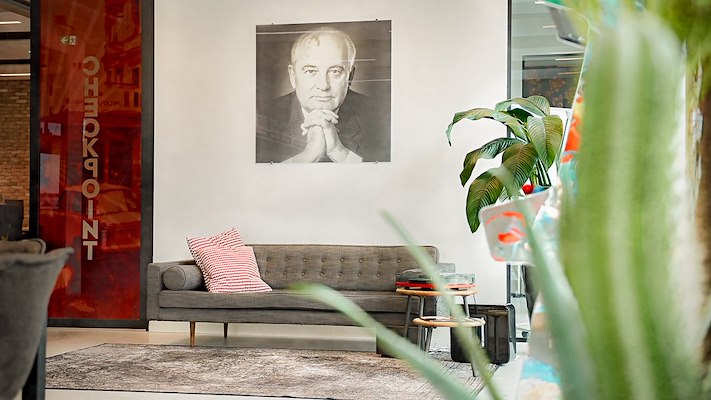 Geïnspireerd door Gorbatsjov en zijn glasnost heeft dit kantoor een Russisch tintje gekregen. Het beton, glas en de bakstenen (in de vorm van Rusland) geven het een industriële en rauwe look-and-feel. De khohloma prints, matroesjka’s, oude propoganda en verwijzingen naar belangrijke momenten, plekken en personen uit de Russische geschieden zorgen dat je bij binnenkomst het idee hebt dat je het Rusland van vroeger binnenstapt. Davai!