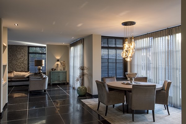 Dit prachtige herenhuis komt statig over door de symmetrie in het ontwerp en de toegepaste materialen zorgen voor een ingetogen uitstraling.
