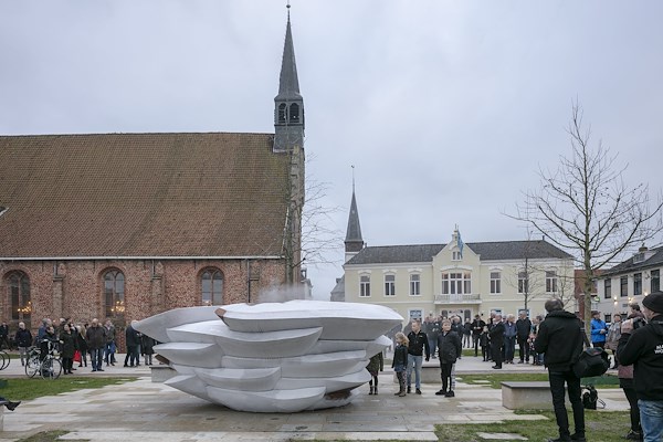 De voormalige Bonifatius terp werd als ruimtelijke beleving in ere hersteld. De terp is als zichtbaar verhoogd vlak aangelegd, zodat er bomen op kunnen groeien, zonder de archeologische bodem daaronder te verstoren. Het plein heeft een groenere inrichting gekregen met grasvlakken en bomen. De contouren van de voormalige abdijkerk zijn zichtbaar gemaakt in de bestrating en opgetrokken muurtjes van kloostermoppen.