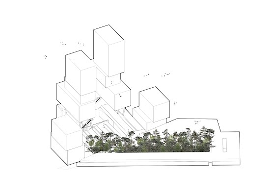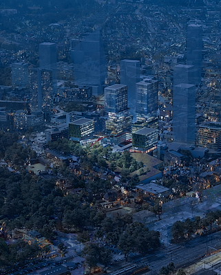 grote ontwikkeling biedt ruimte aan een hoogstedelijk ensemble van vijf circulaire gebouwen. Centraal in het ontwerp is DELVA’s unieke, geborgen stadsbos, dat met een lengte van 140 meter een derde van het terrein beslaat.