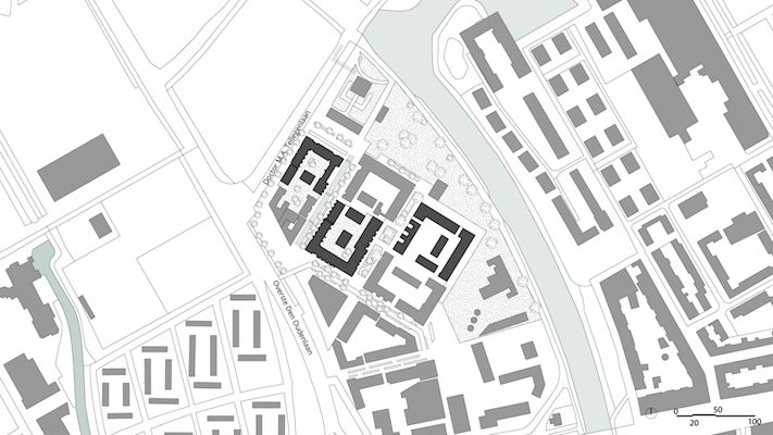 Het voormalig Defensieterrein aan het Merwedekanaal in Utrecht wordt getransformeerd tot een nieuwe autoluwe, klimaatadaptieve wijk waar bewoners met nabijgelegen stedelijke voorzieningen kunnen wonen rondom collectieve tuinen.